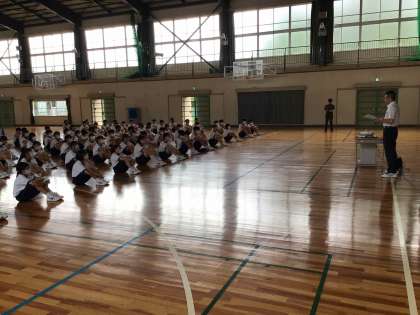 3連休を前にして、今一度、全校生徒が生活のマナーなどについて考える集会を行いました。誰もが気持ちよく生活できるように、マナーやルールを考えていこうという提案がなされました。