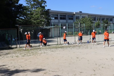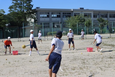 暑さ対策のために、夏の部活動は8時から行っています。どの部活も健康観察を十分に行って、安全留意しながら実施しています。暑さのなか、ボールを力強くたたく音が響いています。秋の大会に向けて、2年生を中心にした新体制で頑張っています。