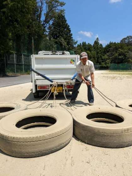 校内整備員の鈴木敏朗さんが、暑い中、整備をしてくださっています。