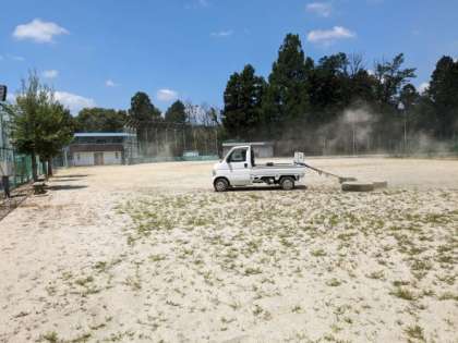きれいになった運動場を使用するソフトテニス部のみなさんをはじめ、感謝して活動をしてほしいと思います。