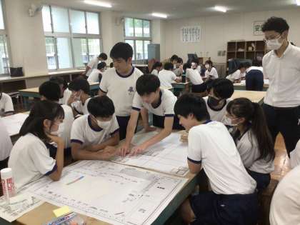 防災講座では、避難所運営ゲームに取り組みました。防災対策課の方から、生徒の柔軟な発想や、考えをしっかり述べる姿を褒めていただきました。いざという時に、地域に貢献できる中学生であってほしいと期待しています。