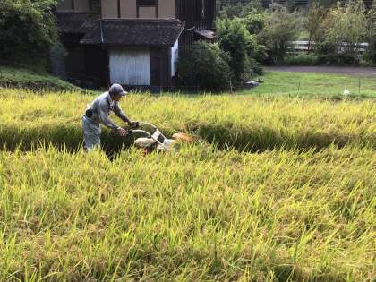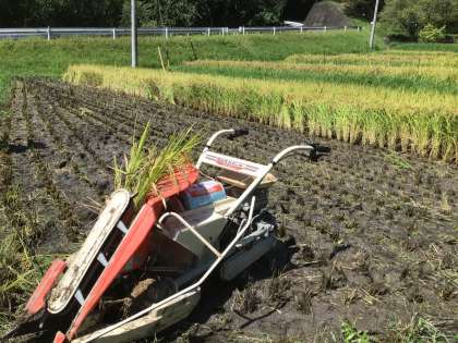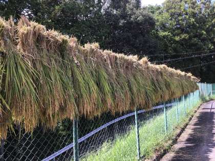 9月8日(金)に実施する予定の稲刈りが悪天候で13日に延期となりました。9日が晴天であったため、地域学校共働本部の鈴木敏朗さんの協力を得て事前準備を進めました。