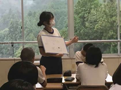 今年度、石野中学校では対話をしながら学び合い深め合う生徒を育てることを大切にして授業を進めています。考えたくなる課題になるよう工夫したり、グループでの意見交流や学習用タブレットで考えを共有したりする時間を意図的に設けています。