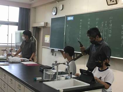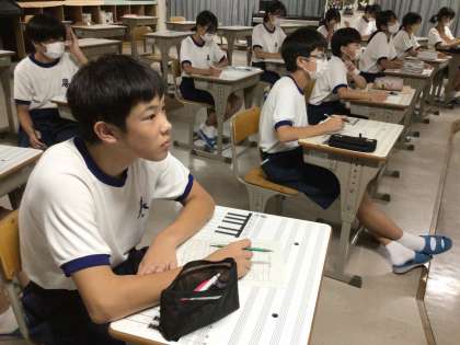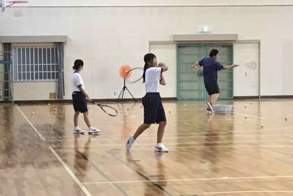 ソフトテニス部は、週末の大会に向けて練習を頑張っています。1年生は、審判ができるように、動画を見ながらスコアを書く練習をしました。