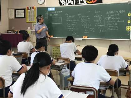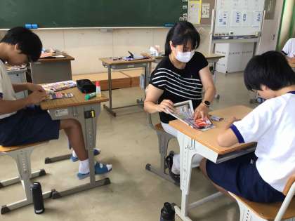 まだまだ暑さが残る給食後の午後の授業も、集中して取り組めている生徒が多いです。互いに教え合ったり、実際にやってみたり、先生の説明を聞いたりしながら、理解を深めています。