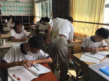 バリアフリー化工事の影響で、授業中に騒音が気になることもありますが、落ち着いて学習に取り組んでいます。生徒同士が関わり合いながら学び合い、「できる」「わかる」ことが増えたり、驚きや感動で心が動いたりする授業を目指しています。