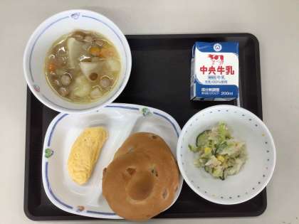 今日の献立は、ポトフ、ツナサラダ、オムレツ、りんごパン、牛乳 でした。 エネルギー:783kcal