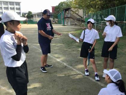 新チームで臨む初めての大会が行われています。女子ソフトテニス部は崇化館中学校と団体戦で対戦しました。緊張しながらプレーしていました。残念ながら惜敗しました。悔しくて涙を流す姿がありました。団体戦の次は個人戦です。