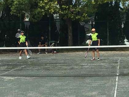 団体戦が終わり個人戦が始まりました。新しいユニフォームを着た一年生も出場しています。試合に勝って喜ぶペアの姿も見られました。