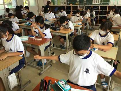 とても進みの良い生徒が見られる中で、針に糸を通すところで