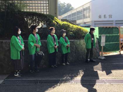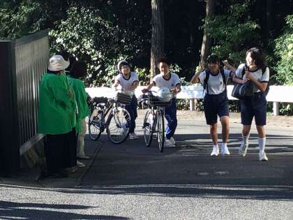 生徒の登校に合わせ、早朝から民生委員のみなさんがあいさつ運動を実施してくださいました。今朝はずいぶん涼しく、あいさつの坂道を登ってくる生徒の表情も穏やかでした。地域のみなさんに見守られ、生徒が健全に成長できることに感謝しています。