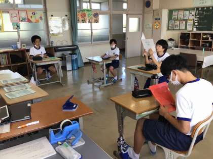 前期、最後の学活で通知表を受け取りました(3,4組)
