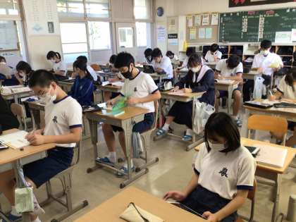 前期、最後の学活で通知表を受け取りました(3年)