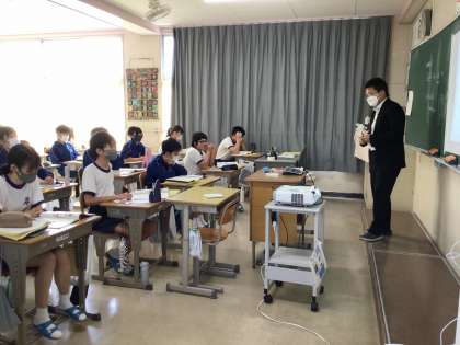 2年生の英語の授業では、助動詞canの使い方を学習しています。諸外国のマナーの違いを調べてcanを使った英文を作り、紹介し合う準備をしています。
