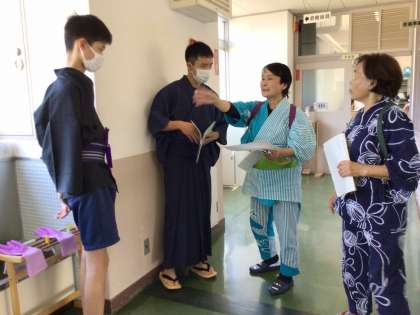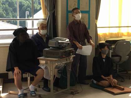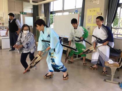 石野歌舞伎グループは、衣装を身に付け、本番さながらの気合いが入った練習を進めていました。それぞれの役割に分かれ、セリフや動き、タイミングなどを講師のみんさんに教えていただきました。