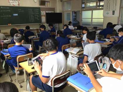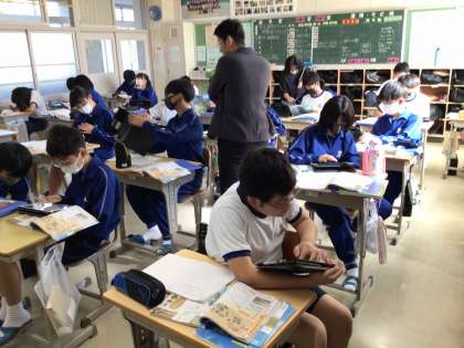 2年生の社会科は、「産業の発達と幕府政治の動き」でタブレットを使った調べ学習を行いました。