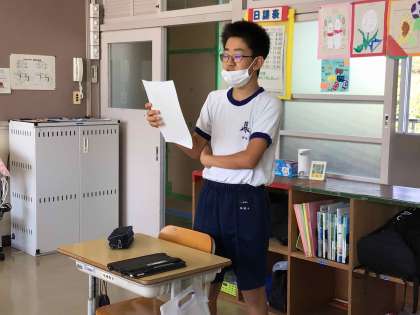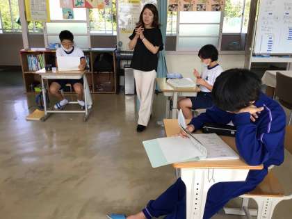 3・4組の国語の授業では、漢字を覚えるだけではなく、意味を理解して使うことができるように覚えた漢字を使って作文し、発表しています。また、発表をよく聞き、良いところを褒めたり質問をしたりすることで、話すこと・聞くことの学習にもつなげています。