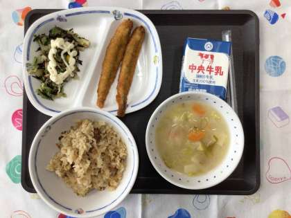 11/ 9 今日の給食 公開日 2023/11/09 更新日 2023/11/09 各学年から 今日の献立は、粕汁、骨太サラダ(マヨネーズ風ドレッシング)ししゃもフライ、三河赤鶏五目ごはん、牛乳 でした。 エネルギー:835kcal
