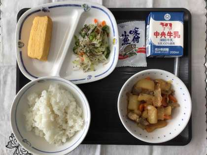 11/13 今日の給食 公開日 2023/11/13 更新日 2023/11/13 各学年から 今日の献立は、豚肉と野菜の煮物、ゆかりあえ、厚焼き卵、乾燥小魚、ごはん、牛乳 でした。 エネルギー:790kcal