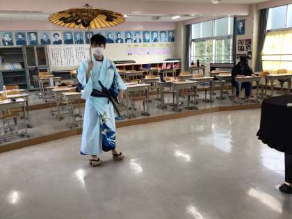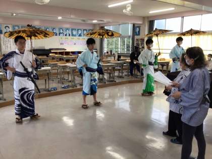 アルペン学習は、仕上げの段階に入りました。石野歌舞伎は、付けうちやBGMに動きやセリフをシンクロさせようと頑張っています。今は簡易の衣装ですが、演者の気持ちは十分に高まっています。