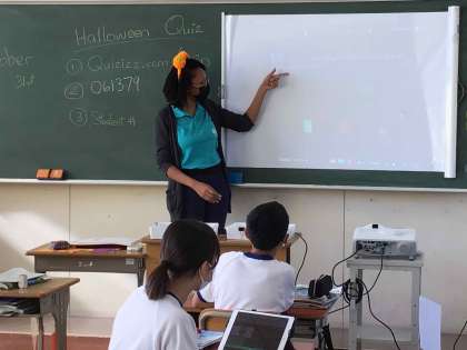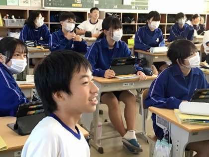 10月26日はALTのシャンティ先生が英語の教科担任と一緒に授業をしてくださいました。もうすぐハロウィンということで、シャンティ先生は自前のハロウィンカチューシャをつけて楽しく授業をしてくださいました。英語のクイズに正解した時の生徒の表情が輝いていました。
