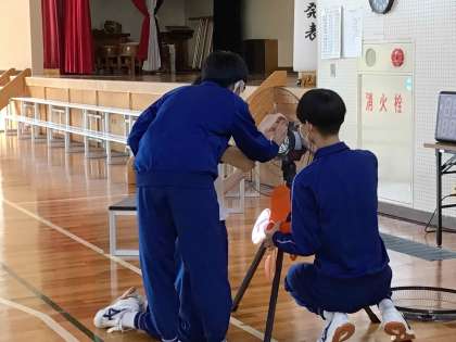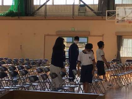 29日の文化祭に向けて生徒の手で会場準備を進めています。また、ふれあいまつりで駐車場になる運動場のネット移動や草取り、落ち葉掃きなどにも取り組みました。