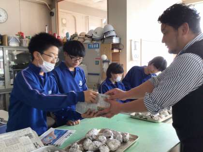 味見を終え、職員室で販売しました。商品の説明の際には、味見したことを生かして「おいしいですよ!」と伝えていました。代金を計算し、丁寧に袋に入れ、「ありがとうございました」と手渡すところまできちんと活動しました。