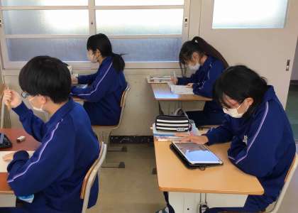 3年生は16日(木)から、1・2年生は17日(金)から後期中間テストが始まります。各教室では落ち着いて授業を受ける生徒の姿があります。学習用タブレットを活用してキュビナで復習したり、問題集に取り組んだりして理解を深めています。