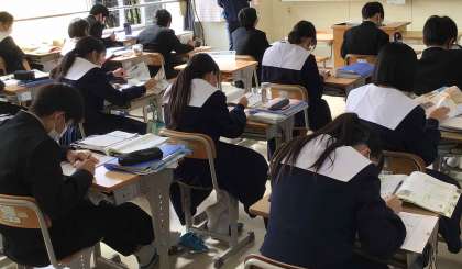 生徒会が企画しているクールビズの期間が終了し、生徒は制服で授業やテストを受けています。日中は温かいため、半袖の制服を着用している生徒もいます。体調や気温に合わせて服装を調整し、集中して学べるようにしてほしいと思います。