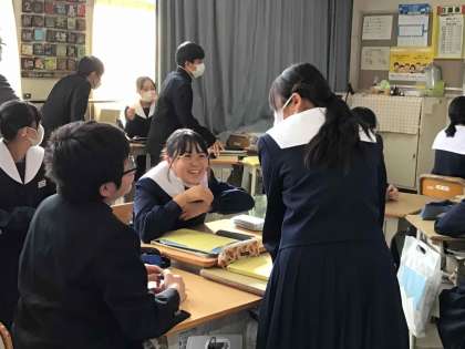 2年生の英語は、ALTと一緒に学習を進めました。習得した英語を活用して、条件に合う英文をグループで考えて発表しました。間違いを恐れず、どんどん英語を口にすることができる生徒の姿がありました。