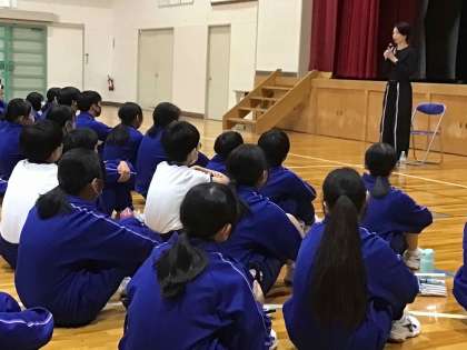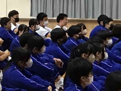 Hitomiさんの講話では、ご自身が夢を叶えるために頑張った際に、食や睡眠が乱れ、運動をしてもやせない状況に陥り体調を崩された経験の紹介がありました。生徒は話に引き込まれ、うなずきながら聞いていました。