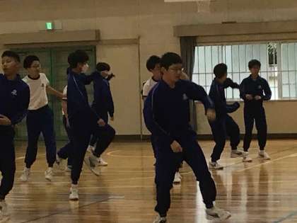 3年生の体育は、いつもとても楽しそうです。曲に合わせて踊る生徒の笑顔が、輝いています。先日実施された学校保健集会でもリズムトレーニングに取り組みましたが、ダンスは体を温めるだけでなく、心もほぐせるようです。