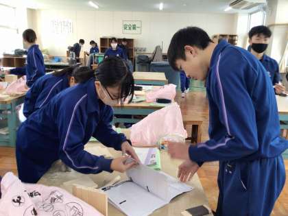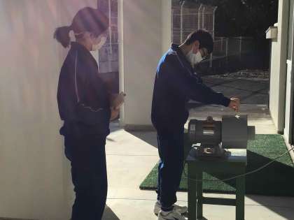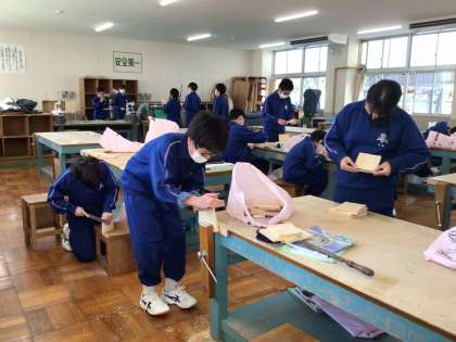 1年生の技術では、木材を加工して箱を作る学習が進められています。道具の扱いにも慣れ、完成を目指して集中して作業しています。