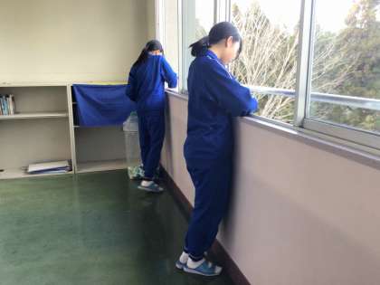 20日のミニ大掃除は、「窓のサッシ、ドアのレールDAY」。掃除棒(ティッシュを割りばしに巻いた道具)を使って、丁寧に掃除する姿がたくさん見られました。中には「二刀流!」と両手に掃除棒を持って作業している生徒もいました。
