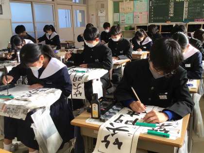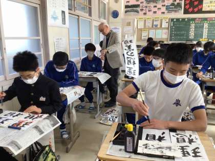 20日に引き続き、21日も書写ボランティアの中根様に書き初めの指導をしていただきました。冬休み中にも練習して、さらに上達できるといいですね。