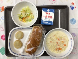 1/18 今日の給食 公開日 2024/01/18 更新日 2024/01/18 各学年から 今日の献立は、マカロニのクリーム煮、フレンチサラダ、たらナゲット、米粉パン、牛乳 でした。エネルギー:850kcal