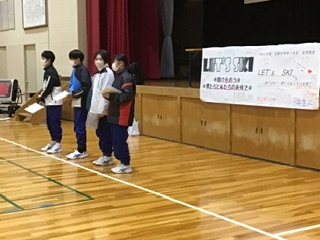 3年生が作成してくれたメッセージが飾られた体育館での出発式を終え、29名の生徒を乗せたバスが乗鞍に向けて出発しました。友情で助け合う姿がたくさんある3日間にしたいと思います。