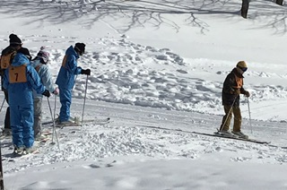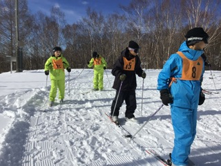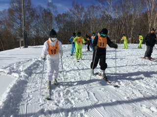 スキー経験に合わせて練習をしています。経験者グループは、早速滑り始めました。