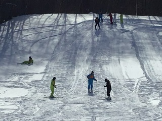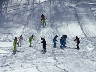 直滑降ができるようになり始め、友達同士で大丈夫!前前!などアドバイスし合って上達しています。