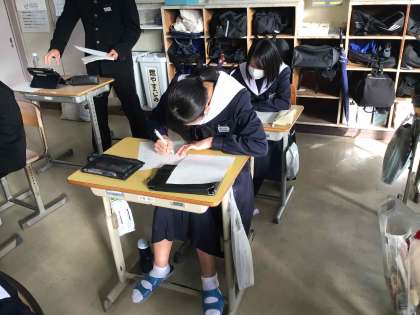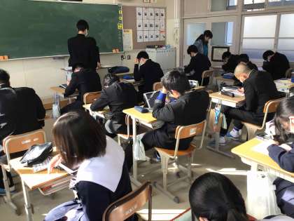 3年生は、卒業アルバムに掲載される「文集」の自分のページを下書き、編集しています。