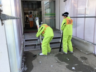 予定時刻いっぱいまでスキー研修をしました。スキー板を持って歩くのがつらそうですが、全員怪我なく戻りました。