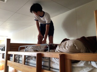 早い時刻ですが、入浴が終わりました。身支度を整えてベッドメイキングです。