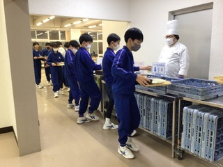 綺麗な夕焼けが見られた食堂で、しっかり夕食を食べました。片付けもしっかり行いました。MIYOSHIカップの準備も楽しそうに進めています。