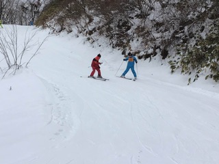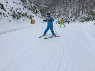 上達して調子にのり、新雪に突っ込むこともあるようですが、全員下まで降りてバスで戻りました。そして、また出発です。