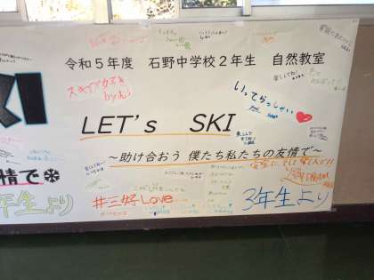 2年生は、楽しかった自然教室の思い出を胸に、1・3年生が書いた「おかえりなさい」のメッセージが飾られた教室に入り、落ち着いて学校生活を送っています。雪景色の中で見た表情とは違いますが、学習にも力を発揮できるように応援していきます。