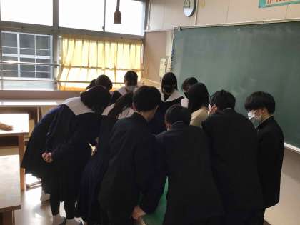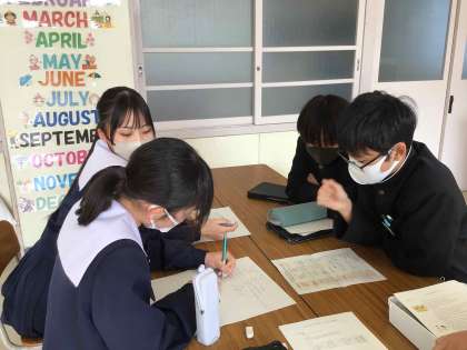 3年生の先輩のために、という思いを込めて、2年生がスタッフ会議で協力して準備を進めています。2年生も笑顔で活動しており、相手を思った活動は、自分も幸せな気持ちを味わえると感じているようです。