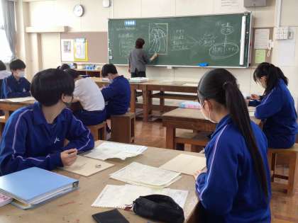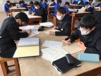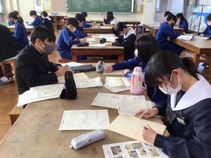 2年生の美術では、「キュビスムで静物を描く」と題し、版画の下絵を描いていました。多色刷りで完成させる予定です。刷り上がるまで予想できない作品。どんな芸術作品が誕生するでしょうか。