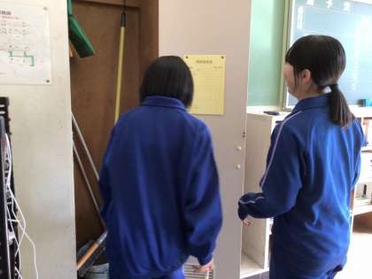 各委員会では、学校生活をよりよくするための話し合い活動を通して、生徒が主体的に活動しています。校則について意見を出し合ったり、清掃道具の点検をしたり、掲示物を作成したり、必要な活動に取り組みました。