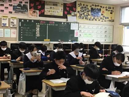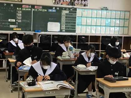 1・2年生は学年末テスト、3年生は公立高校の入試に向けて、朝から一生懸命に勉強する姿がありました。感染症が心配ですが、健康管理に心がけ、頑張ってきた成果を発揮できるとよいですね。