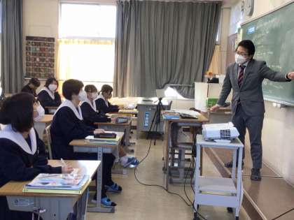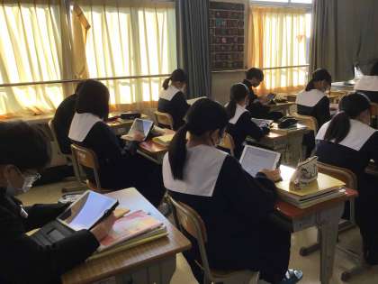 1年生の英語科では、過去形の表現を学んでいます。まず、学習用タブレットで基礎的な文法内容を定着させました。その後、「過去形を使って連休の思い出を語ろう」という課題に沿い、疑問文も用いながら過去形の英語表現を身に付けました。